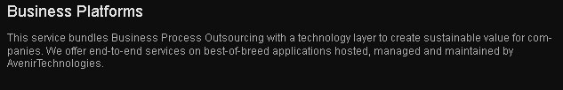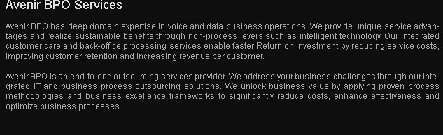 Avenir Technologies providing BPO, E-Commerce, Consultancy, Security, Web Design services